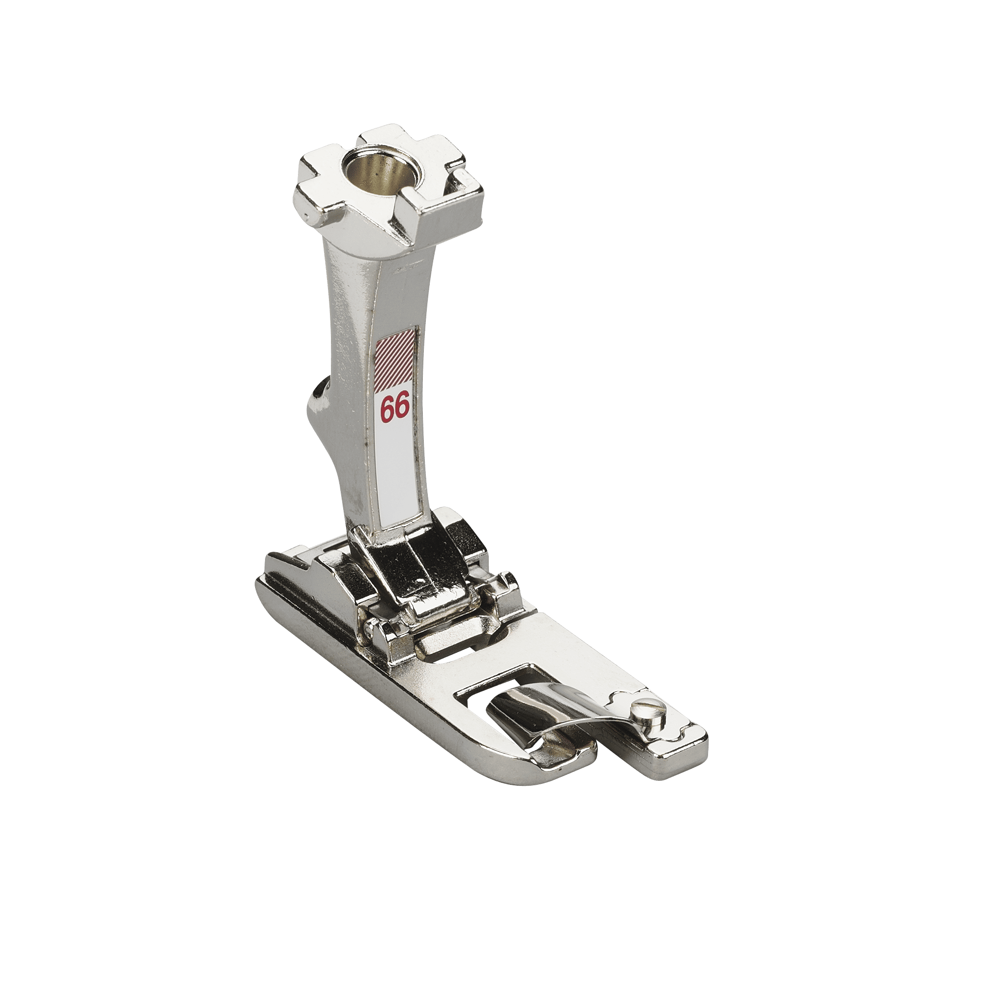 Zigzag Hemmer #66 offers the advantage of a dedicated hemming foot for medium weight fabrics. The fabric is fed into the scroll from the front and turned under twice for before reaching the needle.